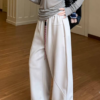 【MOJITO】 Solid Color Curved Blade Loose-Fit Slimming Wide-Leg Pants #2306#